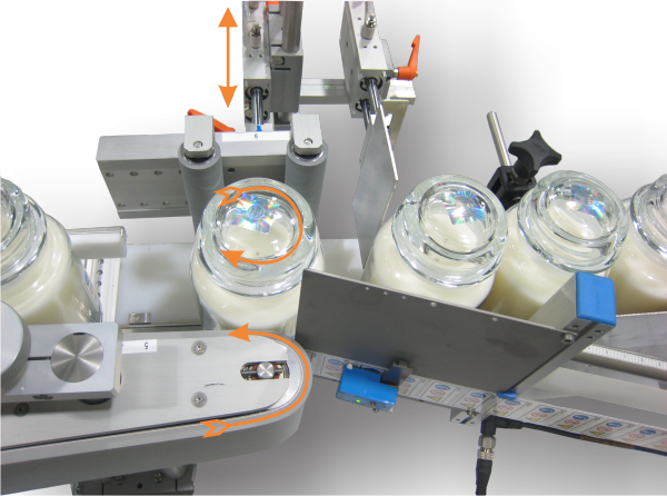 The wrap belt finishes the job by turning the product with it’s label still securely held. As the rotation speed of the product is higher than the speed it travels around the starwheel, the application of the label can reach very high production rates of 300 per minute and higher depending on options included.
