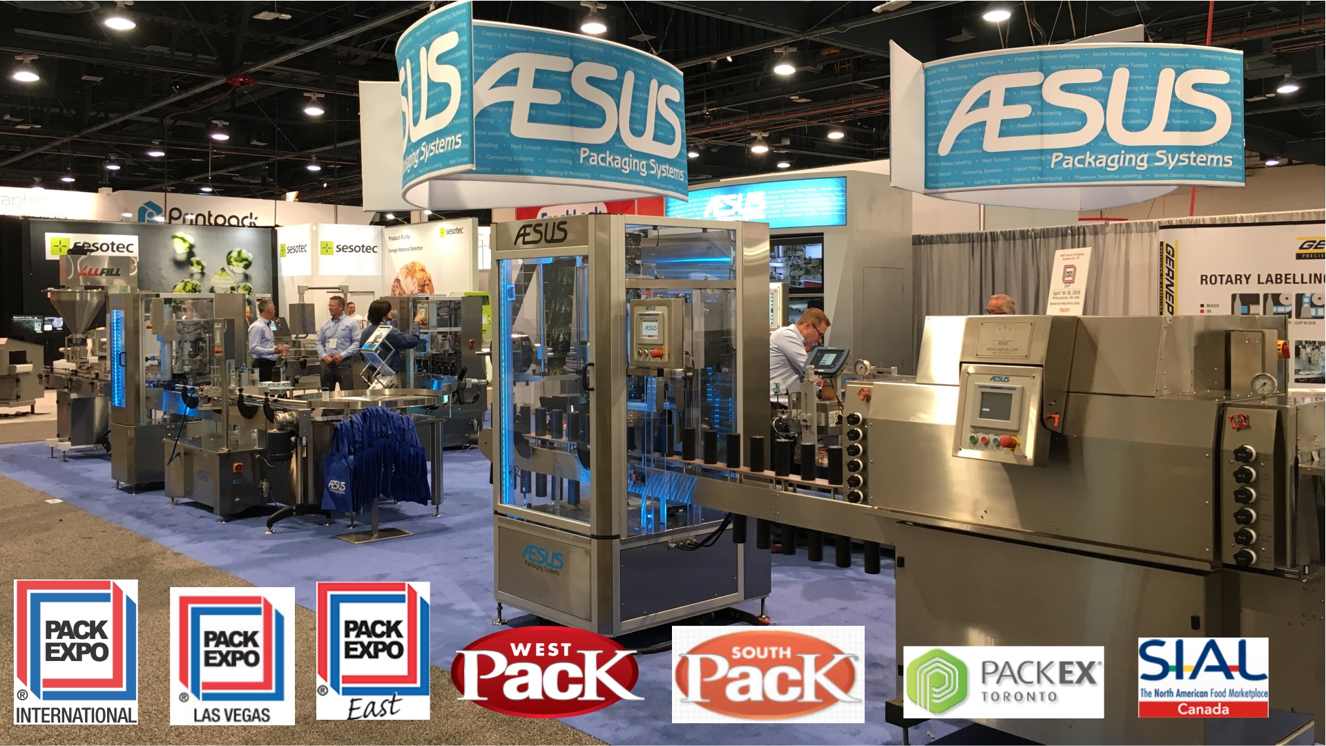 Aesus participates in numerous Packaging and other shows every Year and we invite our customers to come and visit us to see our machinery in action, both our new developments along with well tried and established machines.